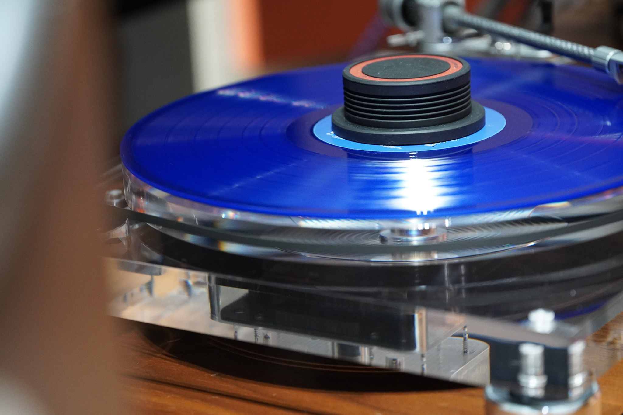 設有20mm厚的透明壓克力唱片轉盤,維持穩定的唱盤轉速