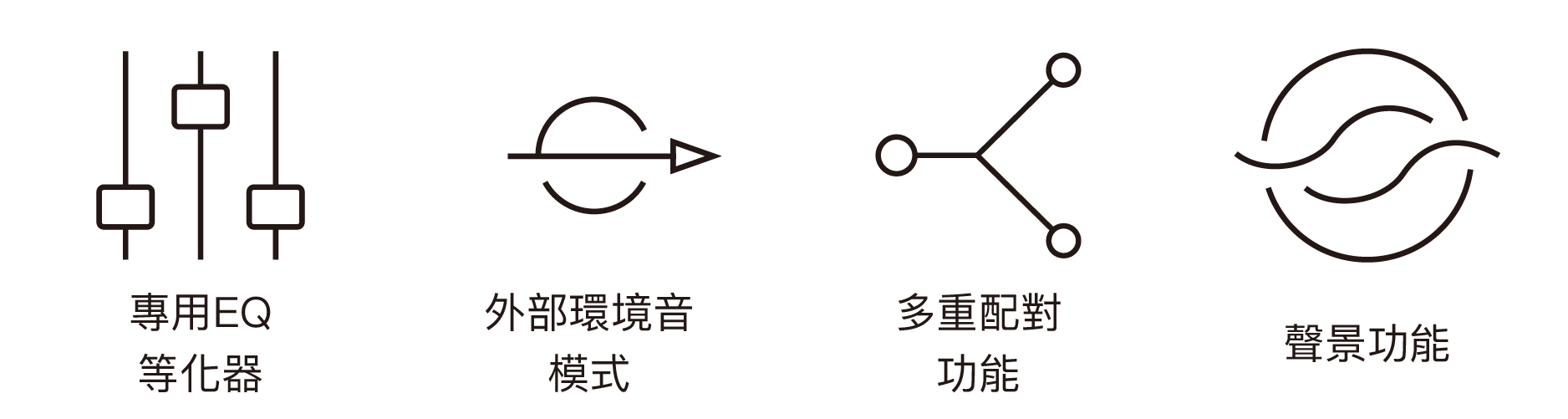 結合⾼解析的深沉低⾳和降噪功能,無論⾝在何處,都能抑制周圍的噪⾳,立即沉浸在喜歡的事物中。想進⼀步感受聲⾳的深度的⼈,則可開啟專⽤等化器「Bass Boost - Deep」體驗讓⼈難以想像是⼩巧耳機帶來的超低頻表現⼒。當然,不僅僅只是享受低⾳的刺激。作為內建多種功能的產品,可以使⽤「外部聲⾳功能」在佩戴耳機時⼀樣流暢地與⼈交談或放⼼通勤,⼜或是在想放鬆精神的時候使⽤「聲景功能」來重振⼼情,隨著各種場合搭配使⽤。