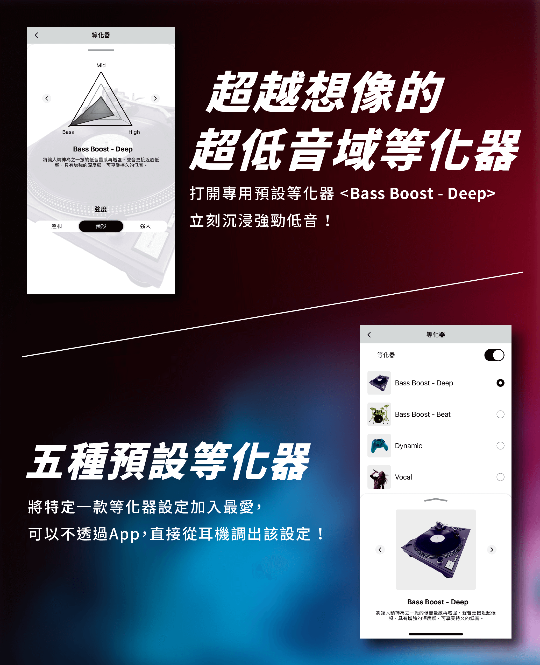 ▌開啟超低⾳域等化器,享受重低⾳特有的餘韻
