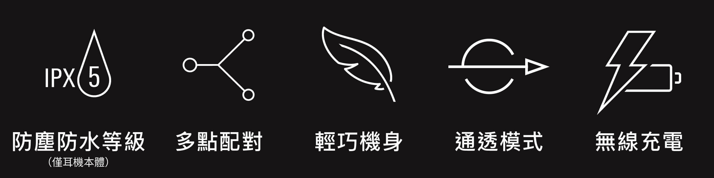 防塵防水等級:IPX5(僅限耳機本體)