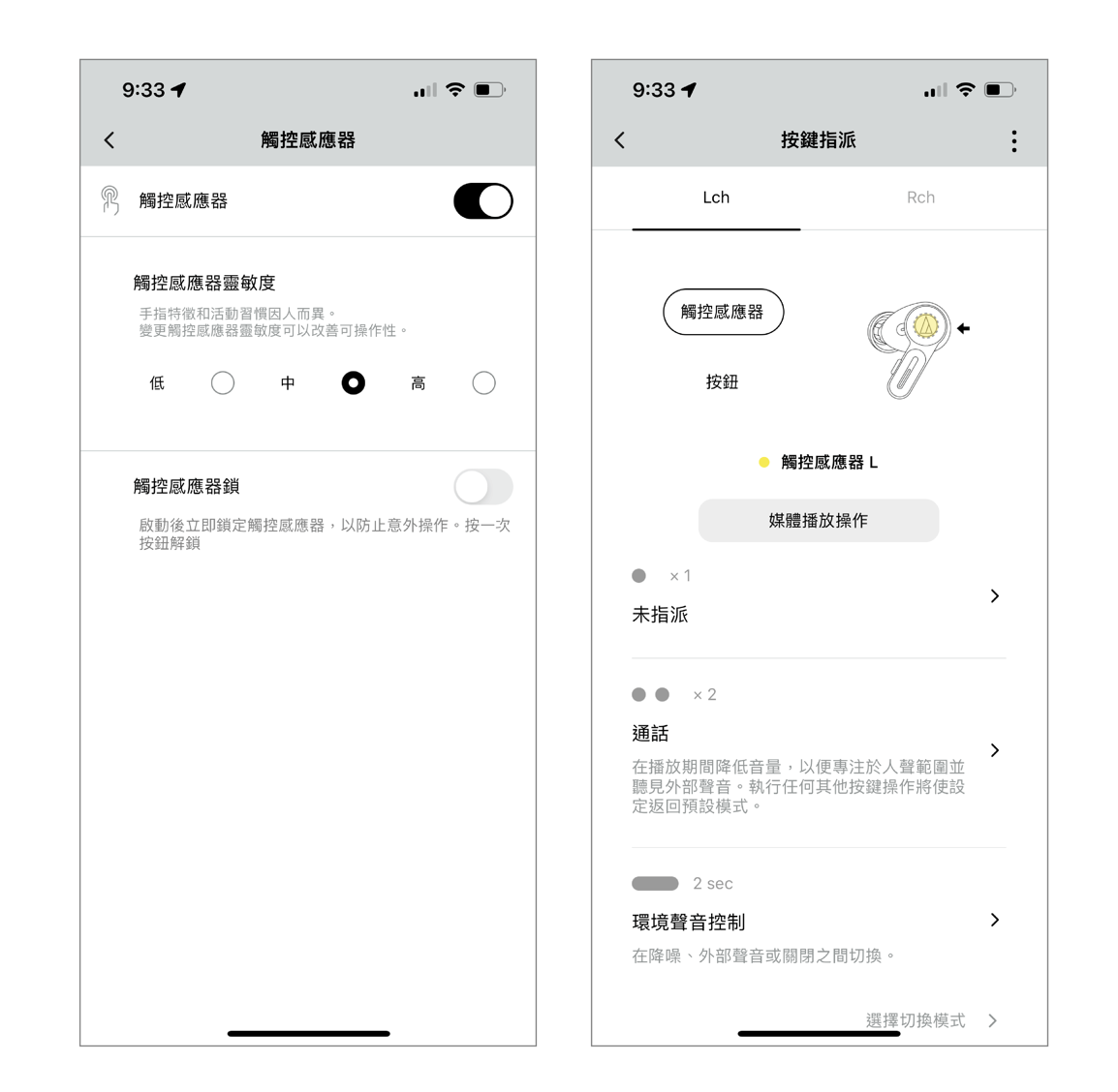 根據自己的需求,分配播放歌曲/音量調整/環境聲音控制等操作於觸控面板&按鍵操作。
