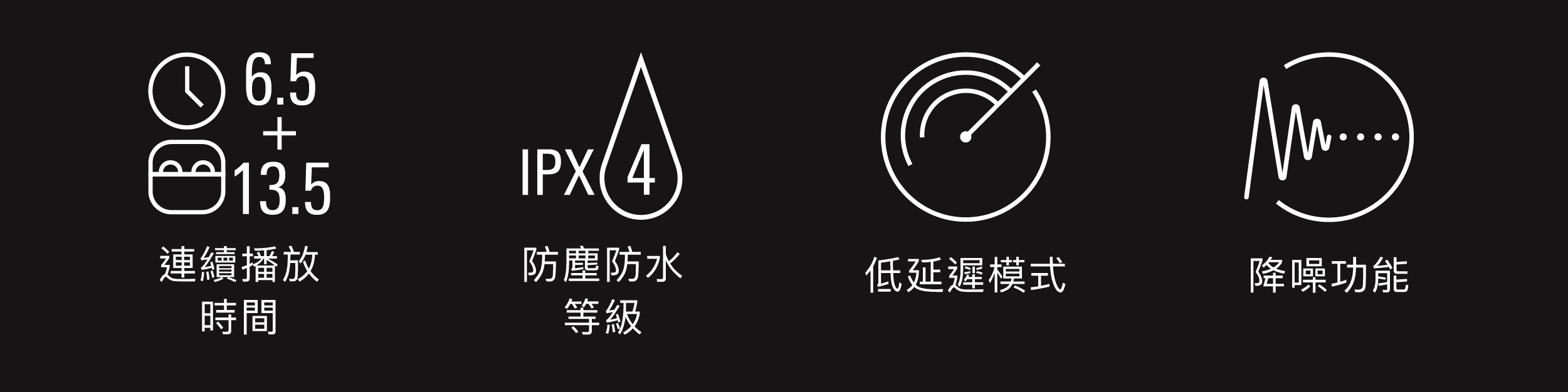 防塵防水等級:IPX4(僅限耳機本體)
