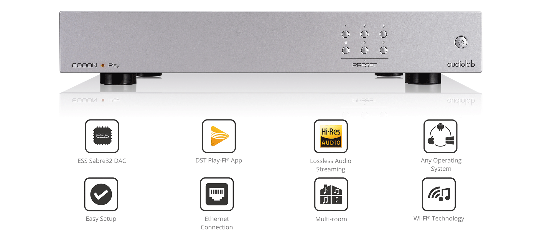以輕鬆的預算取得 Audiolab 優質的美聲,高 CP 值一向是 AUDIOLAB 獲得成功的不二法門,今次推出的 6000N Play 就是旗下最新的網絡音樂播放器,6000N Play 以 DTS Play-Fi 作為系統操控 APP,可支援sptify KKBOX、TIDAL、Qobuz、 Deezer、Amazon Music、QQ MUSIC、iHeartRadio… 等音樂平台以及以 DLNA 串流方式播放 NAS 及電腦音樂檔,還有免費的網路電台, 更可以方便地組成多組播放器或者喇叭的多房間系統。