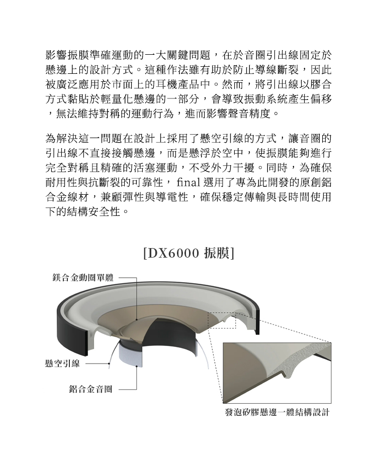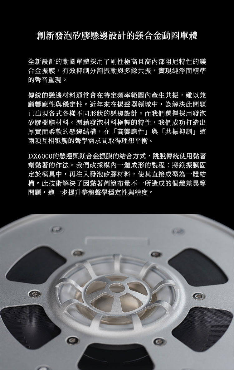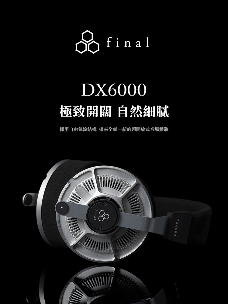 Final 推出全新頭戴式耳機「DX系列」:採用自由氣流結構,帶來全然一新的超開放式音場體驗。「DX series」是一款搭載全新研發、極具創新性的動圈單體所推出的新系列,首發機種「DX6000」搭載「瞬態響應線圈系統」,具備令人驚艷的高解析與絲滑音質,實現卓越的瞬態響應性能與可清晰感知音階層次的細膩低頻,帶來前所未有的聽覺體驗。