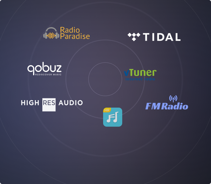App 支援串流服務:Tidal,Qobuz,Spotify,HighResAudio,vTuner,Radio Paradise,QQ 音樂…等