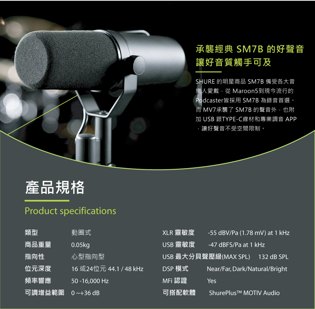 受到傳奇SM7B的啟發而誕生的動圈式麥克風:MV7