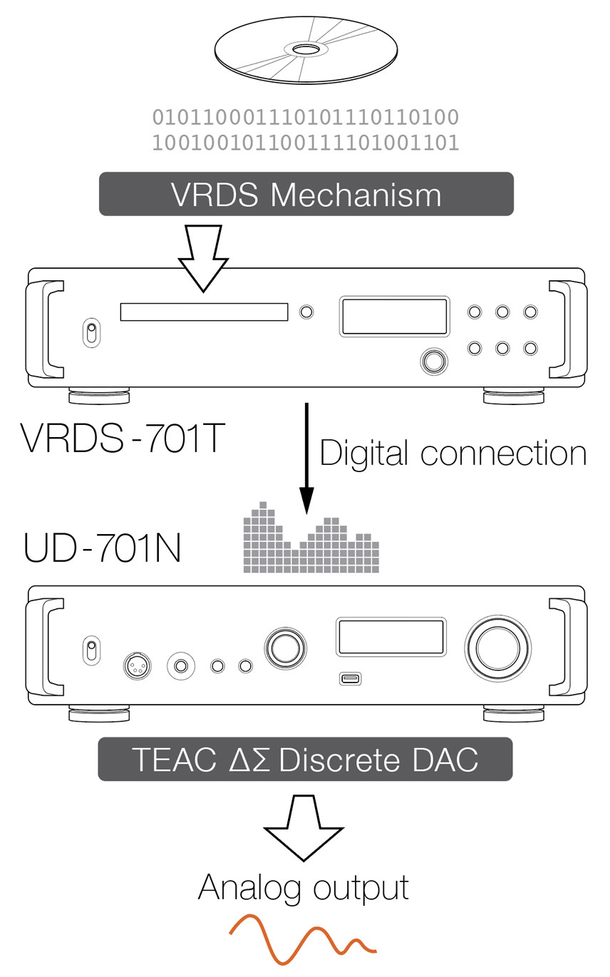 VRDS-701T 是一款紀念 TEAC 成立 70 週年全部開發純 CD 轉盤。採用了 TEAC 專門研發的 VRDS 結構,與 DAC 結合使用時,最大限度地發揮出 CD 的重播效果。