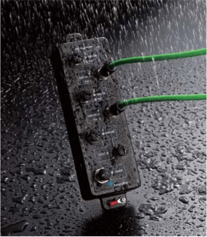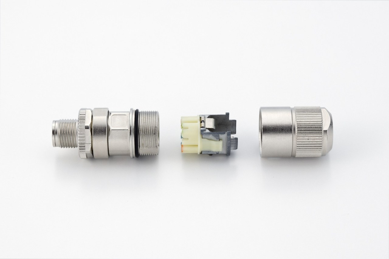 M12 CONNECTORThe key feature of the M12 GOLD SWITCH is the fact that it adopts an industrial round connector called the M12 connector. It is not a rectangular connector RJ - 45 that is mounted in ordinary household electronics, but an industrial connector that enables more reliable signal transmission. This connector is used at the site where more sophisticated data transmission is required (e.g. for railroad). The connector is not commonly known, but has wide market share in industrial use. The M12 connector is fully shielded. |